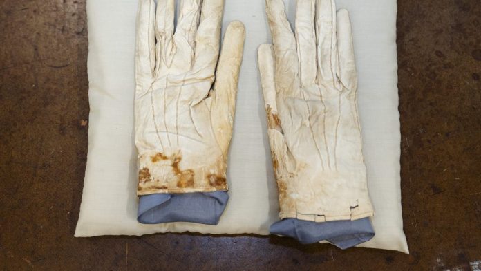 A pair of gloves that were in Lincoln’s pocket at Ford’s Theatre the night he was shot drew the largest bid at auction. (Pat Nabong/Chicago Sun-Times via AP Newsroom)